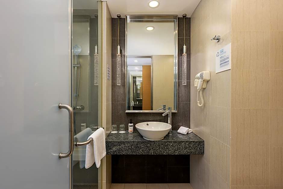 Twin-sharing room comes with a Ipod docking station, 32-inch flat-screen TV, an ergonomic chair and private bathroom with a shower. Rate includes breakfast.