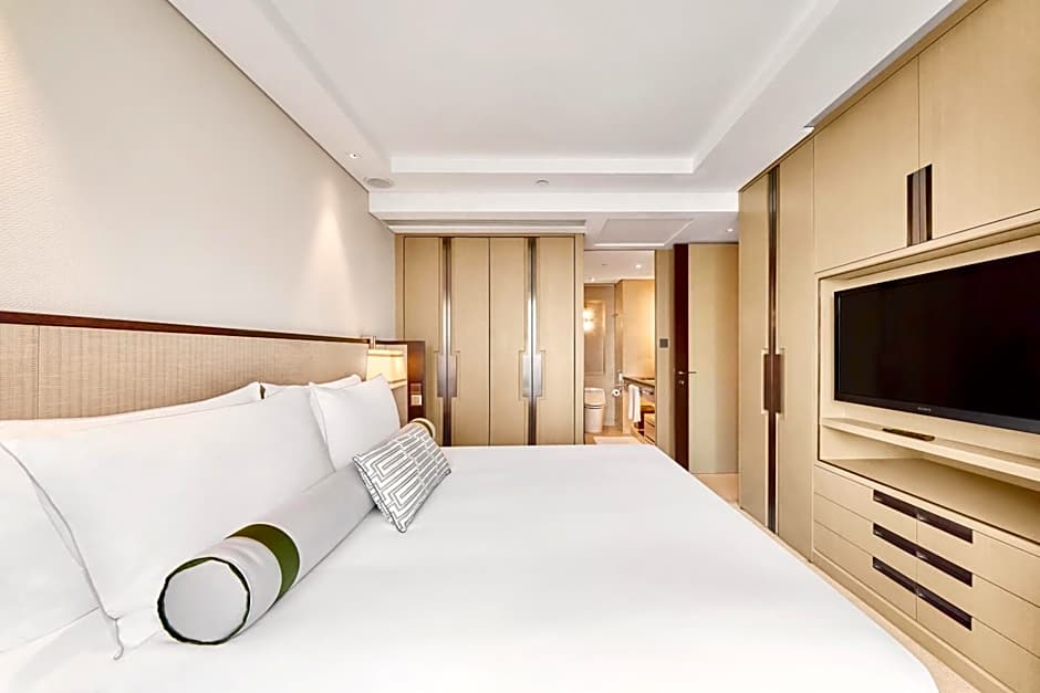 Offering city or river views, this studio features a dining area, dressing room and private bathroom.