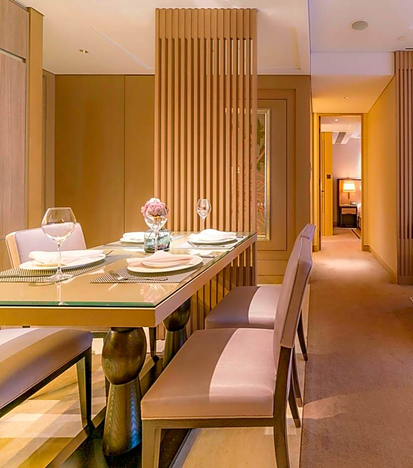 Offering city or river views, this suite features a dining area, sofa and private bathroom.