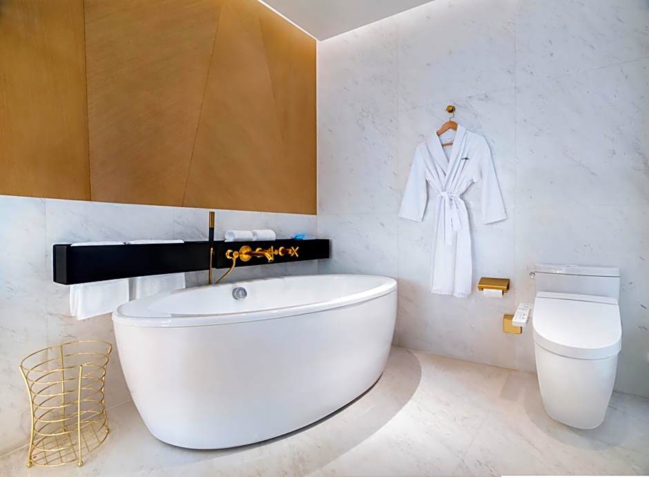 Club Suite, 1 King Bed, City View is 861 square feet and includes a king-size bed 150-183 width plus extra beds on demand, desk, satellite tv , hairdryer, tea and coffee making facilities , safe, bathrobes, and slippers and has a Disability-friendly bathroom.
