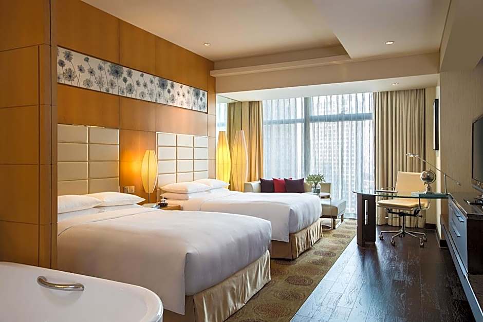 This twin room's special feature is the hot tub. Providing free toiletries and bathrobes, this twin room includes a private bathroom with a bath, a shower and a hairdryer. The spacious air-conditioned twin room provides a flat-screen TV with cable channels, soundproof walls, a mini-bar, executive lounge access as well as city views. The unit offers 2 beds.