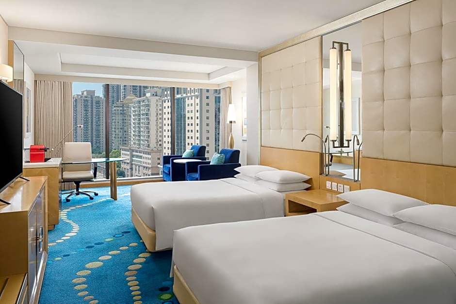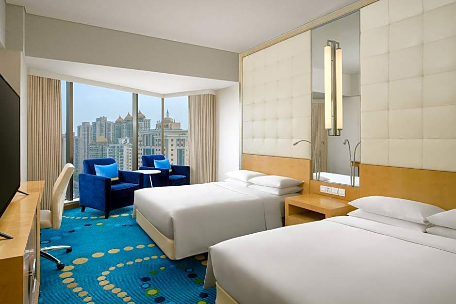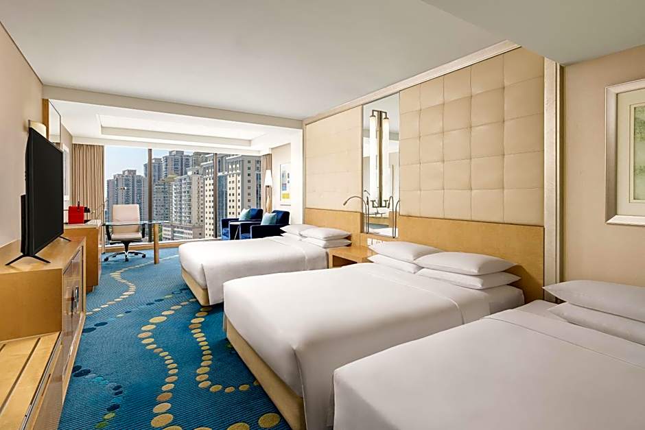 Located from Floor 17 to 20, this air-conditioned room features floor-to-ceiling windows overlooking the bustling city. Each room comes with a 37-inch flat-screen TV with cable/satellite channels, a mini-bar, a safety deposit box, pillow menu and an private bathroom with a separate shower and a bathtub.