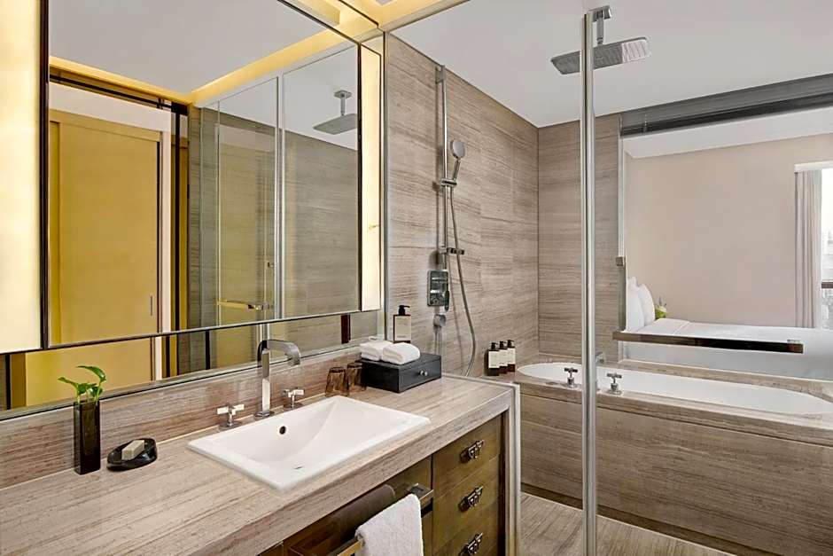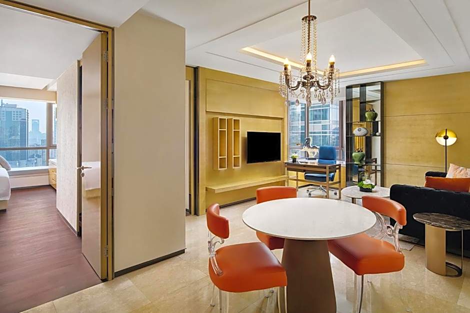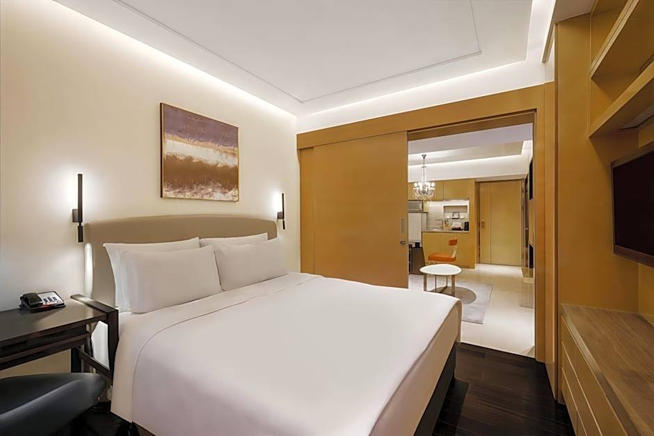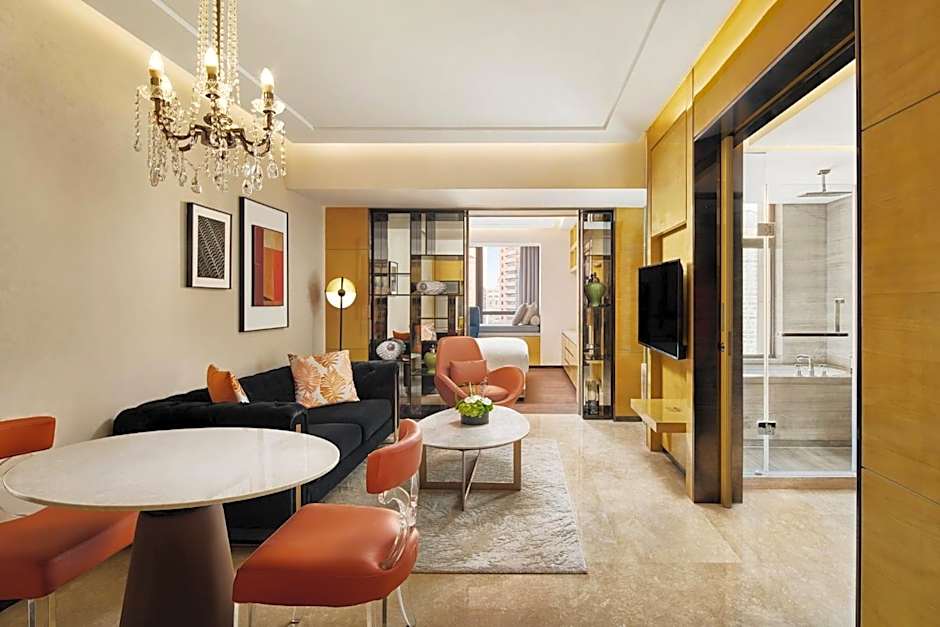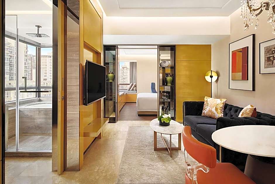 Overlooking Shanghai's skyline, this spacious air-conditioned suite has a separate living room with a flat-screen TV and iPod dock and a fully-featured kitchenette. The private bathroom has a bathtub and shower.