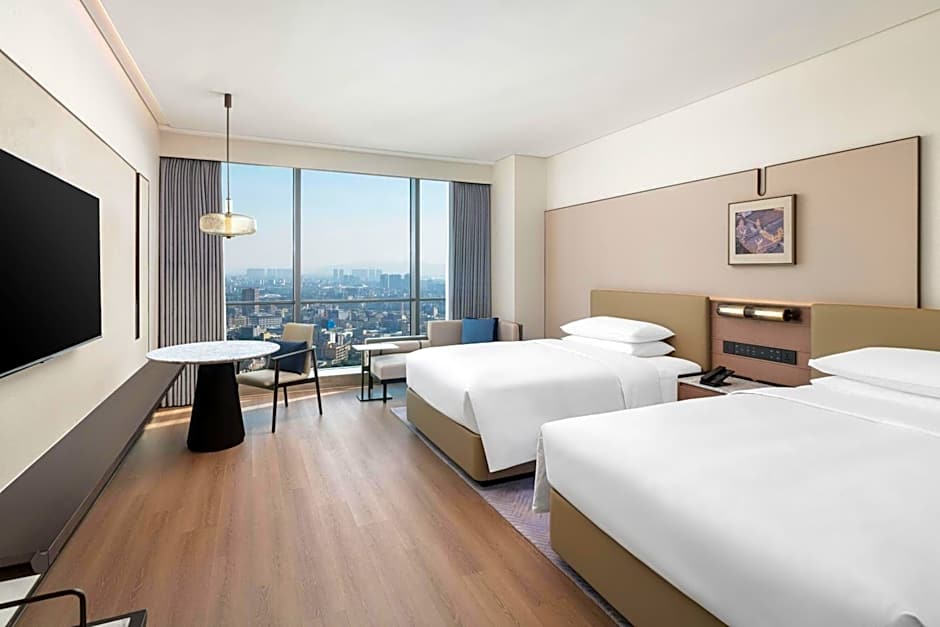 Guests will have a special experience as this double room provides a hot tub. Offering free toiletries and bathrobes, this double room includes a private bathroom with a bath, a shower and a hairdryer. The spacious air-conditioned double room offers a TV with cable channels, a mini-bar, executive lounge access, a wardrobe as well as city views. The unit has 2 beds.