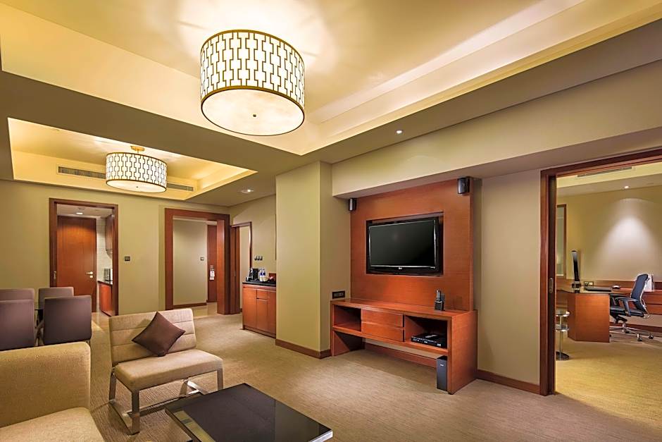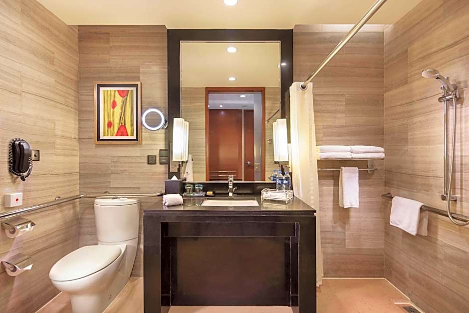 Stylish room offers a large desk with high-speed internet access and free remote printing, a 42-inch LCD TV, a fully stocked mini-bar and a branded bed. Private bathroom offers a separate shower and a bathtub. Room offers access to Executive Lounge and benefits, including usage of a private meeting room, free breakfast, snacks and beverages.