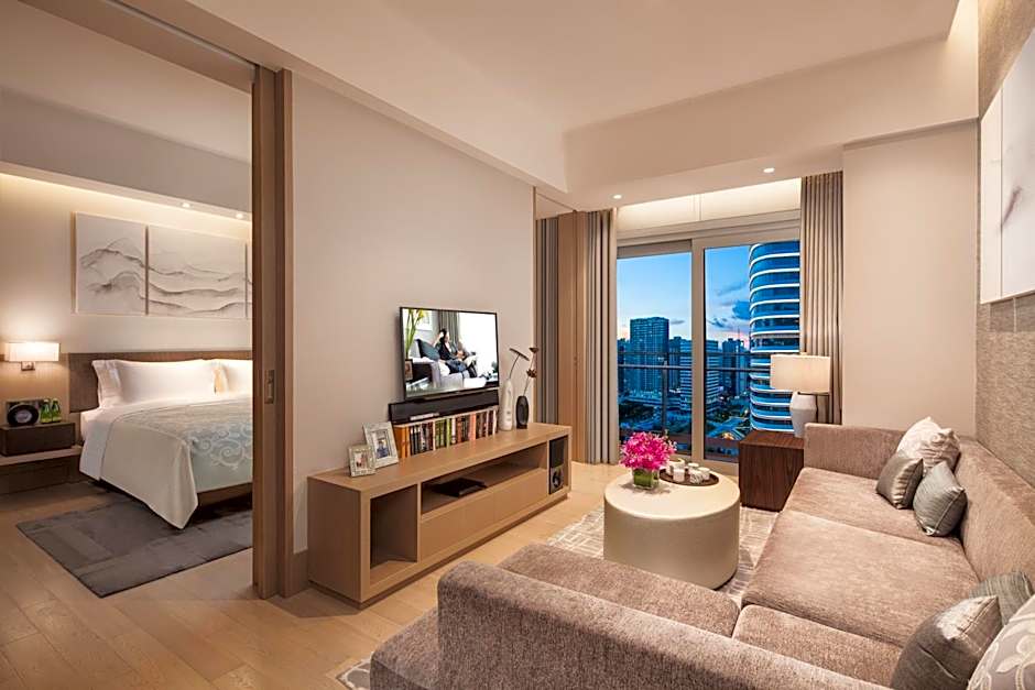 Ascott Raffles City Shenzhen is a 5-star apartment retreat in Shenzhen, China, located 9,4mi from the city center. The address is No.22 Dengliang Road. Breakfast is offered, and the property has 163 reviews. Prices start from $127 per night.