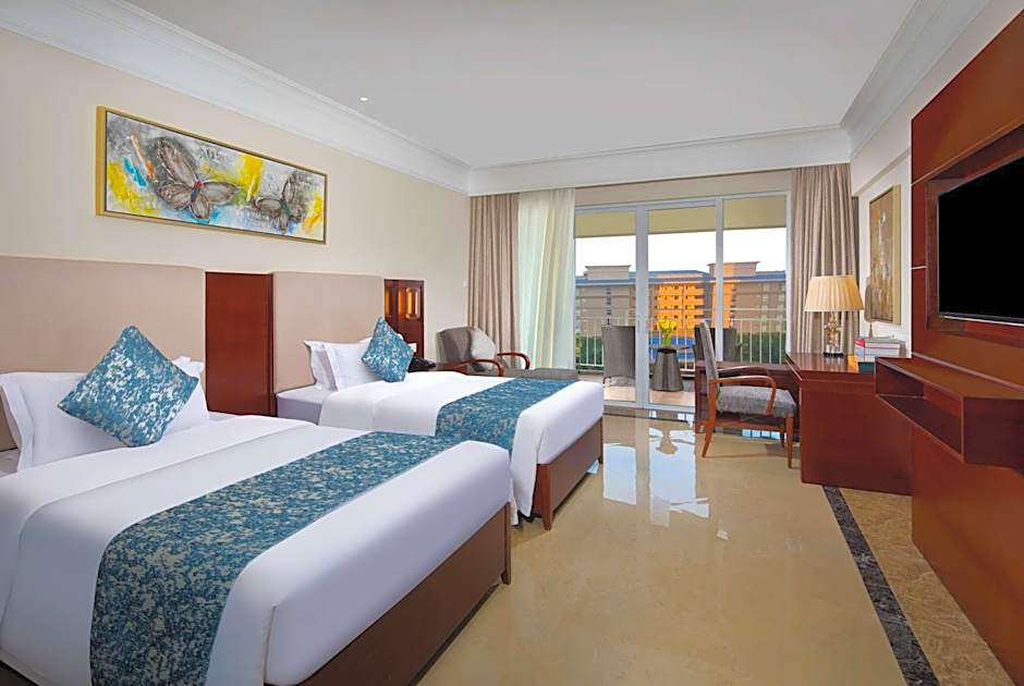 Immerse yourself in the array of complimentary amenities such as a water park, outdoor swimming pool, and a private beach area. Enjoy the beachfront location, take a plunge in the waterslide, or indulge in water sports activities available onsite for a fun-filled stay. Let the free Wi-Fi keep you connected as you soak up the sun on the sun deck, unwind in the garden, or explore the business center for those mixing work with pleasure. With a fitness center, bar, and a restaurant offering delectable meals, your every need is catered to at Wyndham Garden Wenchang Nanguo.