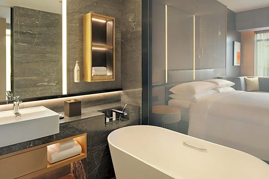 This spacious suite consists of 1 living room, 1 separate bedroom and 1 bathroom with a bath and free toiletries. This suite is air-conditioned and features a seating area with a flat-screen TV, a mini-bar, executive lounge access, a wardrobe, as well as a safe deposit box. The unit offers 1 bed.