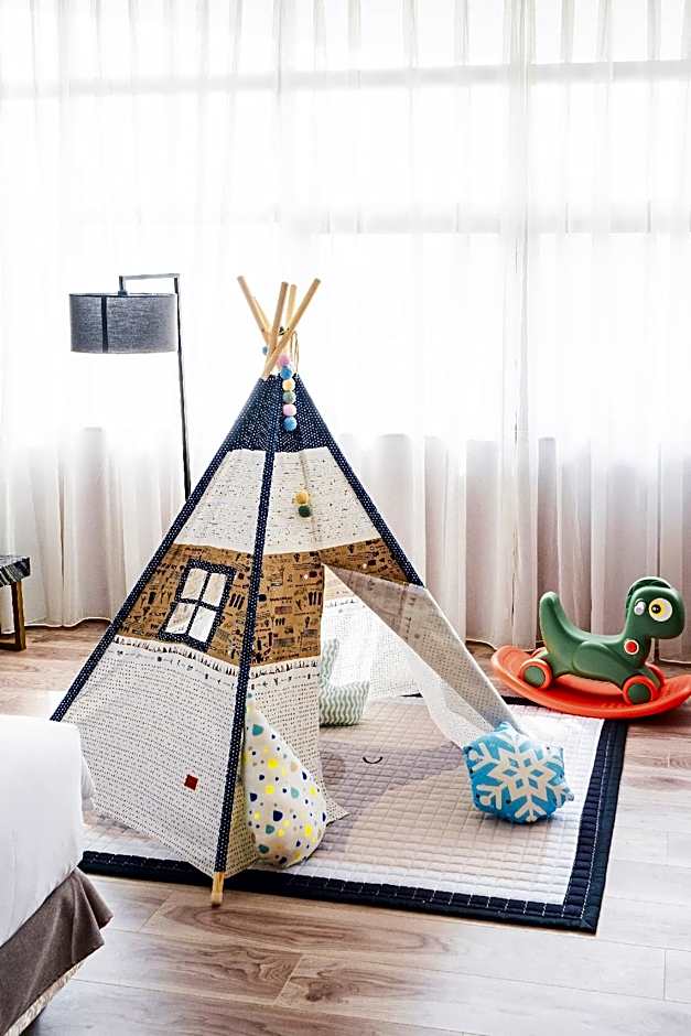 An outdoor rooftop pool reserved for adults invites year‑round refreshment, with sweeping mountain and landmark views to set the mood for a chic escape. The pool deck opens onto a terrace that’s perfect for sun and sunset moments, mixing relaxation with dramatic scenery above the city. It’s a standout way to unwind after a day spent exploring Yuanhoukeng.