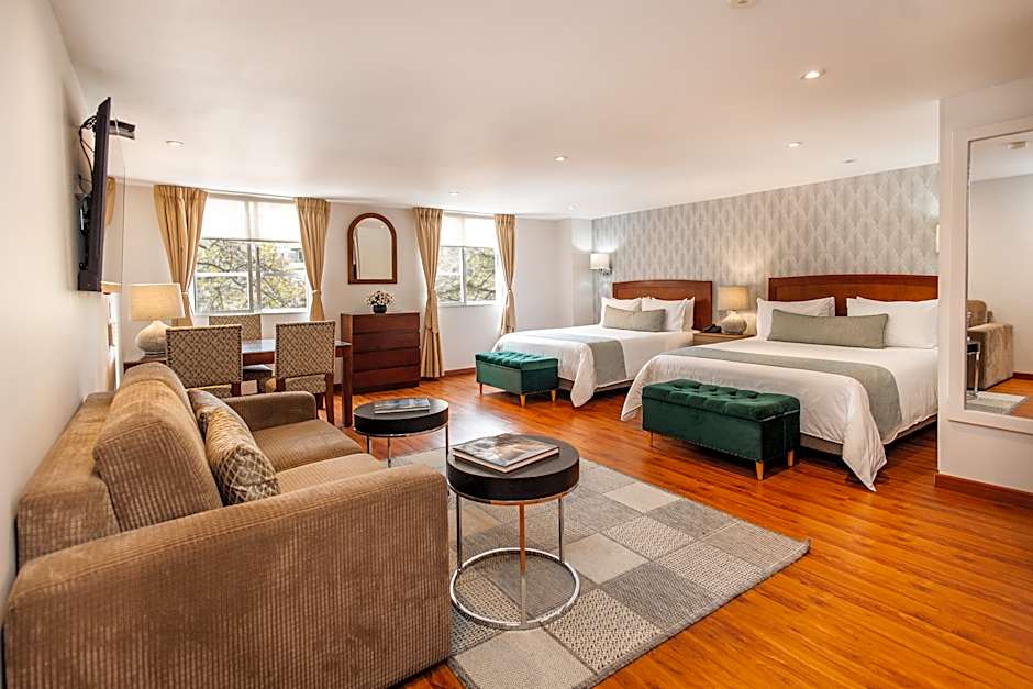 The Hotel Portón Bogota offers a range of rooms including Grand Suites, Junior Suites, Standard Twin Rooms, and Standard Double Rooms. Smoking is not allowed in any of the rooms. The rooms accommodate 2 adults and 1 child, except for the Standard Twin Room which also accommodates 2 adults and 1 child but has 2 twin beds instead of a queen or king bed.