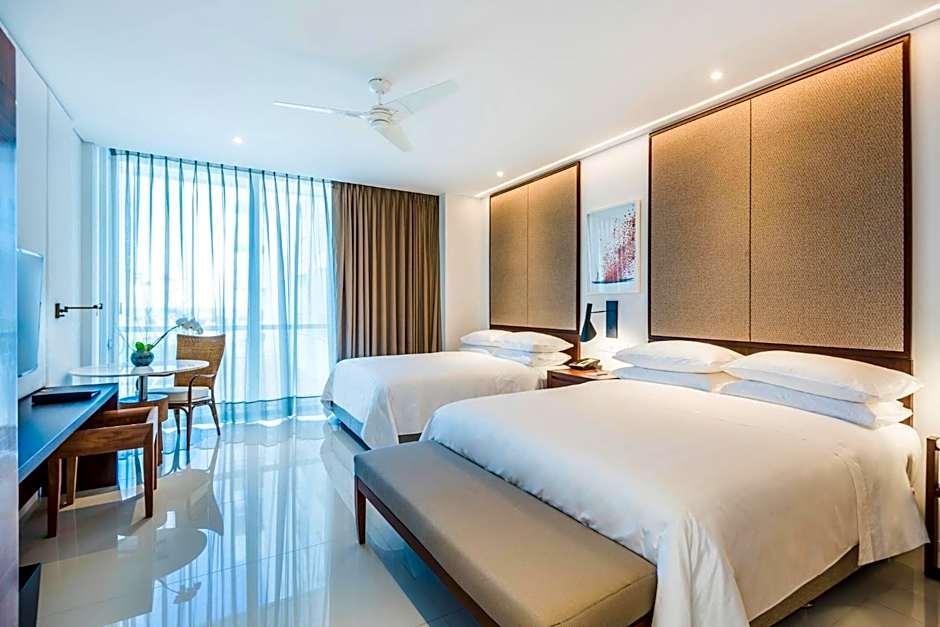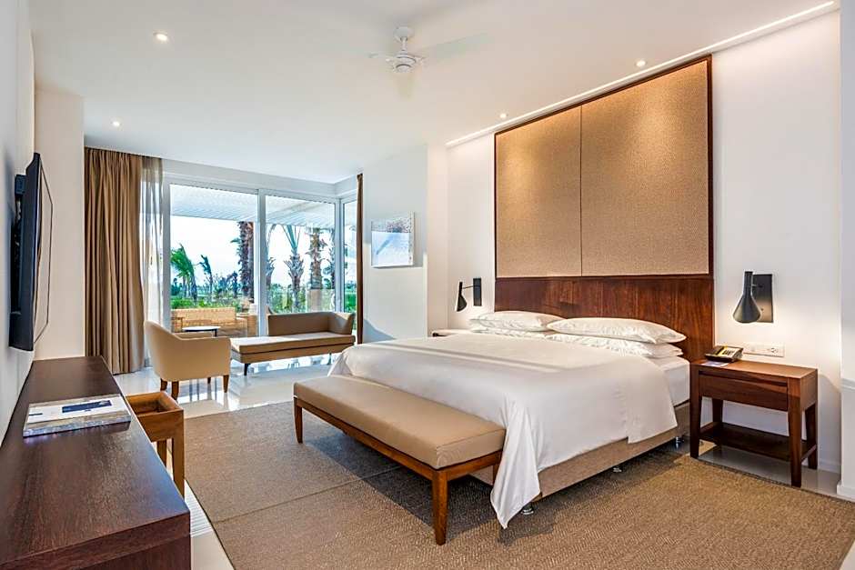 Cartagena’s beachfront sanctuary blends palm-fringed vistas with a private pool and spa/wellness packages, all set among terraces and garden views. Dining on site includes Portofino (Italian), Oceana (Seafood), and World Cafe (International), each with a family-friendly ambiance for sunset dinners or breezy lunches between adventures.