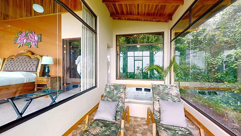 These suites offers the best views of the Arenal Volcano and the rainforest from its furnished balcony. They have a bedroom, private bathroom, cable TV and digital safe. They have a coffee maker, and a microwave oven and mini refrigerator are available for free upon request. Most of these suites have air-conditioning.