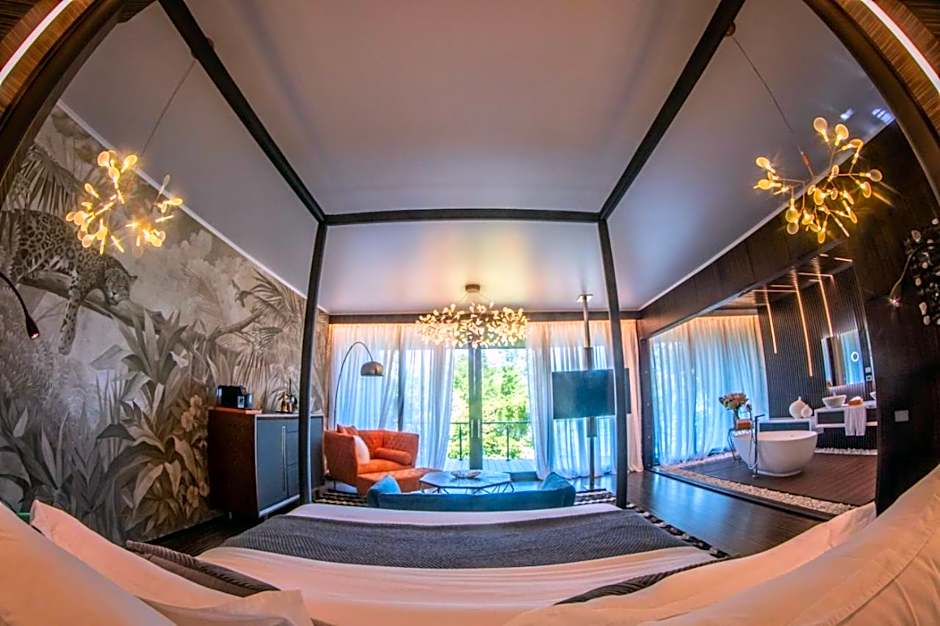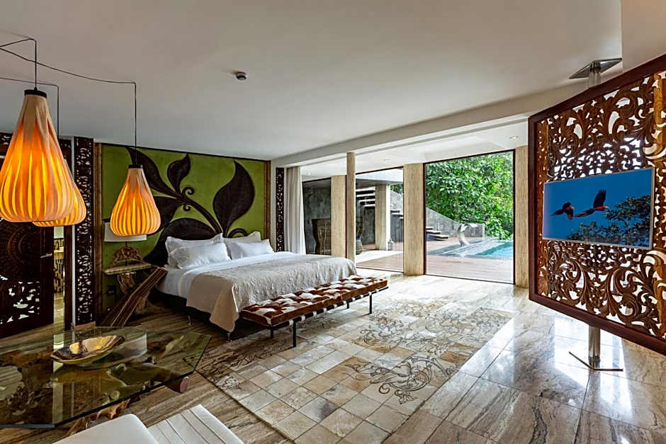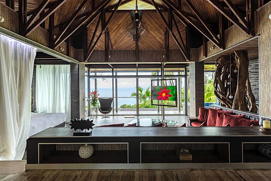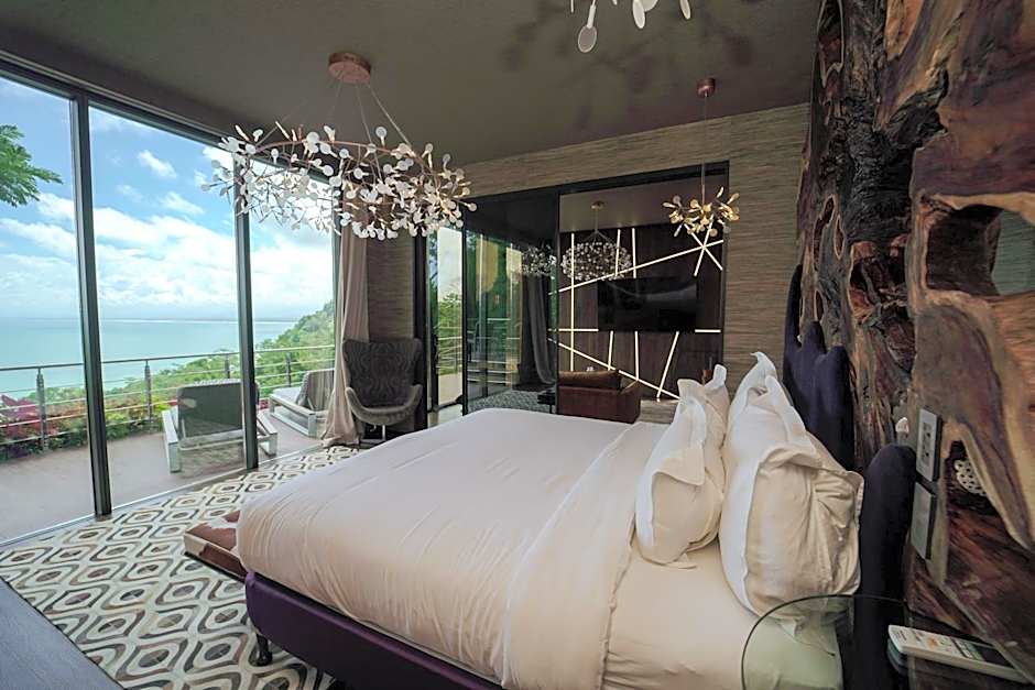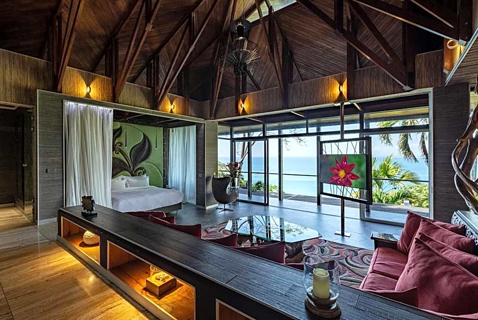 This Luxury Villa features one King size bed. It features ocean and rain-forest views from its own private balcony, while boasting marble floors, a terrace with infinity pool depth of 13 feet, the "smart house" system, fully equipped modern kitchen, hammock and rattan beds, flat screen TV, dining table for 2-4 people made of natural teak. This room also includes free Wi-Fi and free parking, daily housekeeping, security 24 hours a day.
