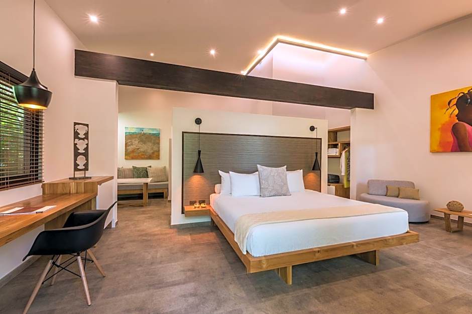 Cala Luna Boutique Hotel & Villas offers Deluxe Rooms with 1 King Bed and Lifestyle Suites with 1 King Bed. The Deluxe Rooms accommodate 2 adults and 1 child, while the Lifestyle Suites are for adults only. Smoking is not allowed in either type of room. The Deluxe Rooms are 388 sqft in size, while the Lifestyle Suites are slightly larger at 452 sqft.