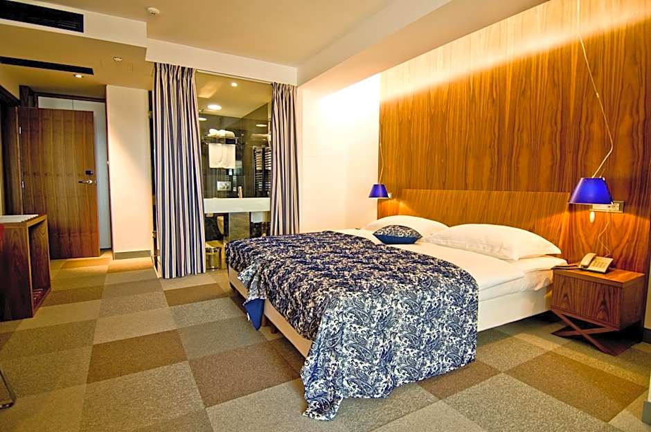 This air-conditioned room offers a flat-screen satellite TV, a safe and a mini-bar. The design is reminiscent of a yacht's interior.