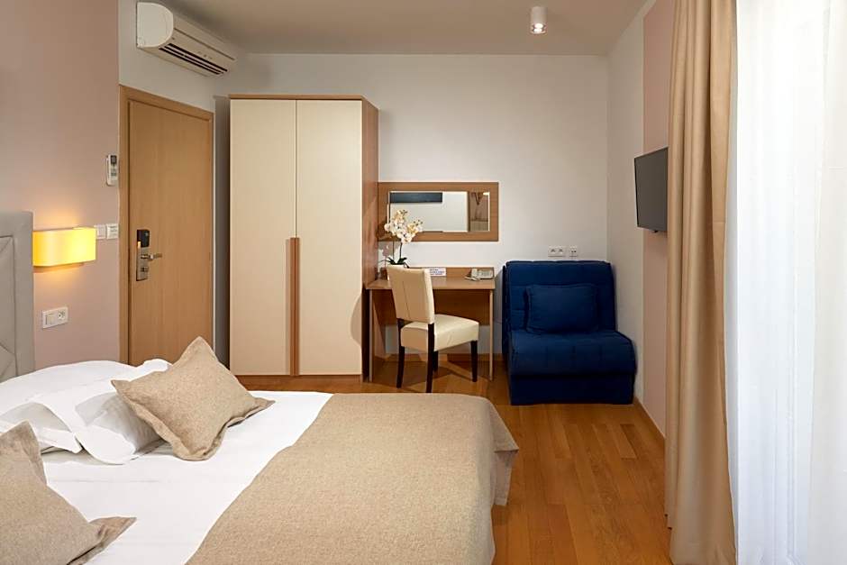The air-conditioned room features a fridge, a kettle and a work desk. Satellite TV and a DVD player are also available. Bathroom is equipped with shower and hairdryer. The balcony offers a view of the Adriatic Sea.