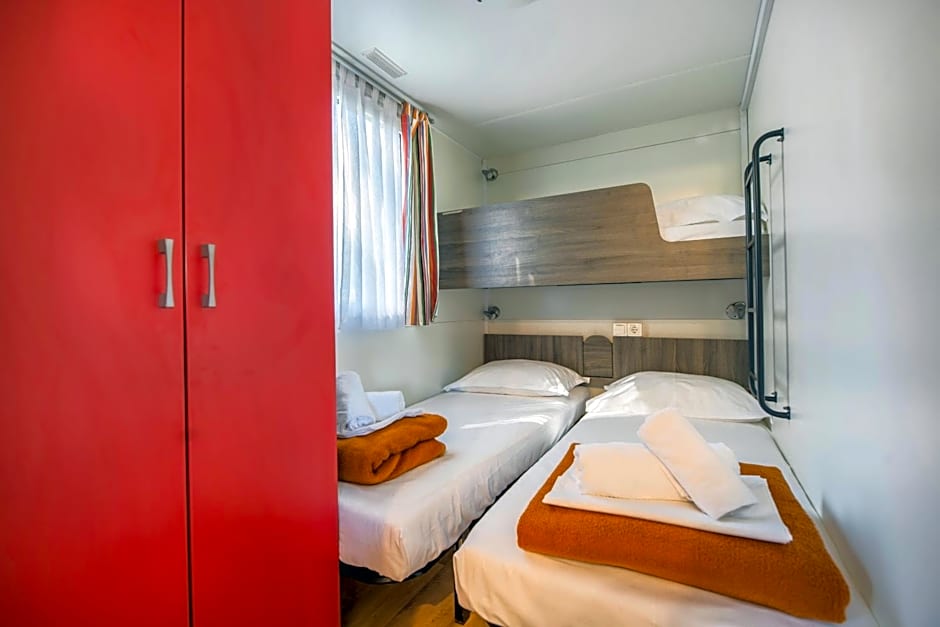 Boasting a private entrance, this air-conditioned mobile home comes with 1 living room, 1 separate bedroom and 1 bathroom with a shower. In the kitchen, guests will find a stovetop, a refrigerator, kitchenware and a microwave. Featuring a terrace with sea views, this mobile home also features a coffee machine and a flat-screen TV with satellite channels. The unit has 2 beds.