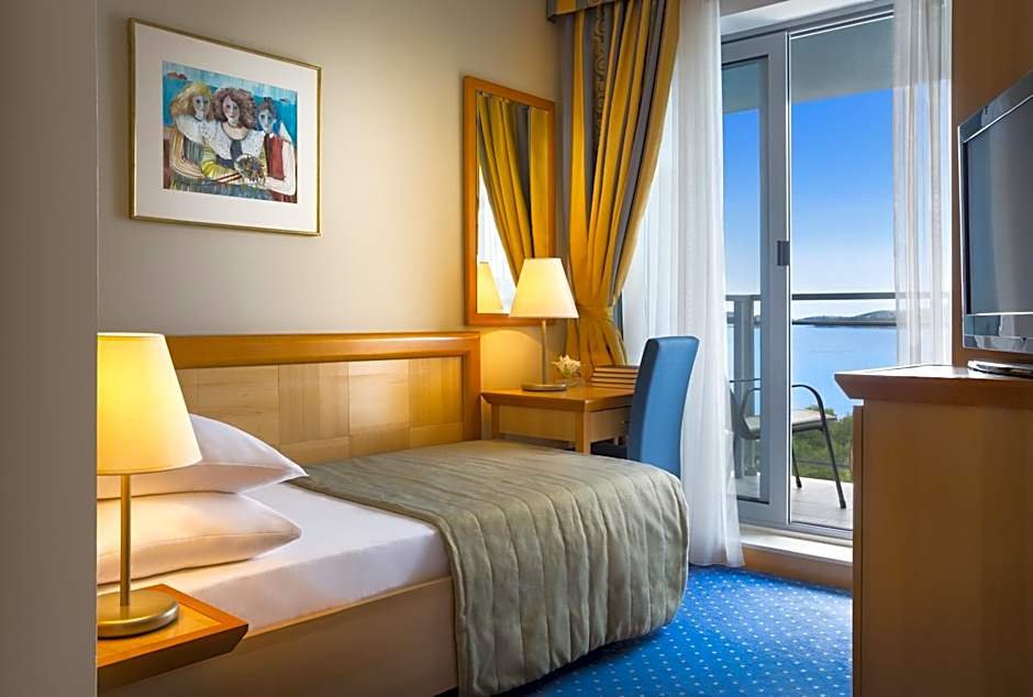 Guests at can enjoy a range of fantastic amenities, including a free outdoor swimming pool, kids' club, fitness center, and live music performances. The hotel also offers a private beach, tennis court, and sun deck for guests to unwind and soak up the Croatian sun. Room service, a bar, and a restaurant are available on-site for convenient dining options.