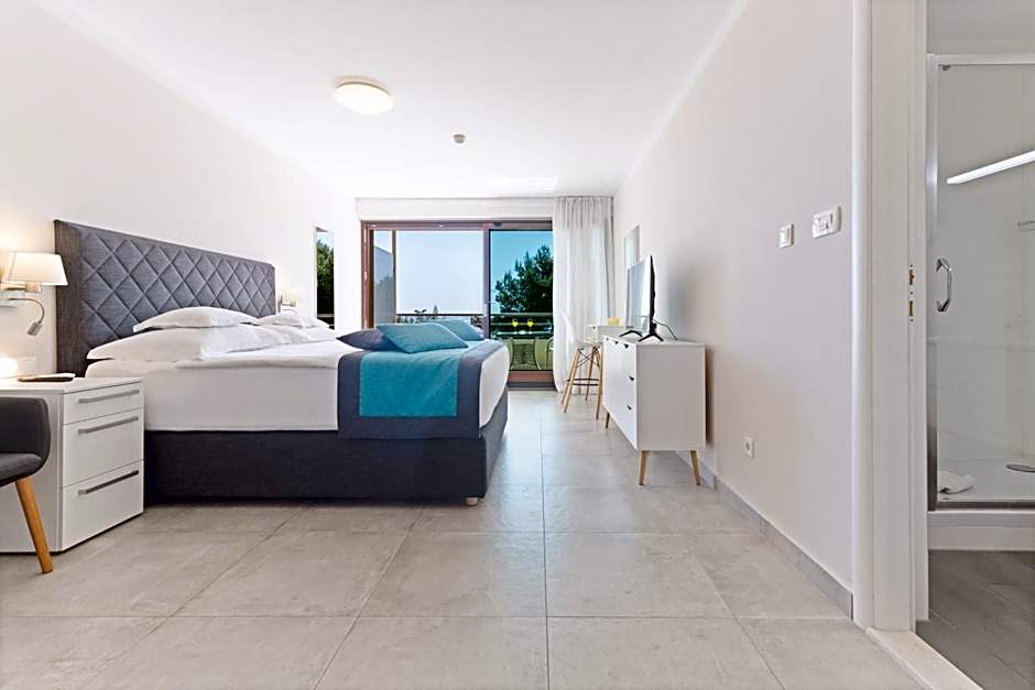 Accommodation options cater to every kind of traveler, from compact Double Rooms with Queen beds to spacious Deluxe and Superior Apartments with multiple bedrooms and balconies. Studio layouts and Modern Studio options offer sea views, while apartments with balconies and kitchenettes blend home comforts with hotel convenience. For larger groups, there are layouts that accommodate bigger gatherings, ensuring plenty of space for meals and memories together.