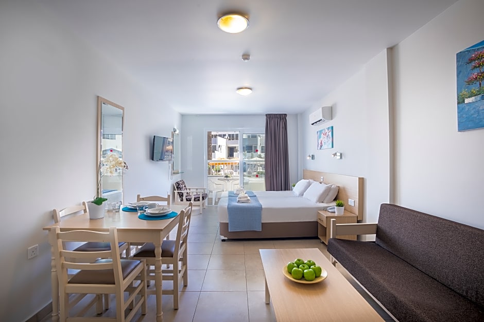 At Christabelle Hotel Apartments, guests can enjoy a range of amenities including an outdoor swimming pool, a kids' pool, private parking, and free Wi-Fi. The hotel also offers a 24-hour front desk, a bar, restaurant, sun deck, and terrace for guests to relax and unwind during their stay. With air conditioning provided free of charge, guests can stay cool and comfortable in the Cyprus heat.