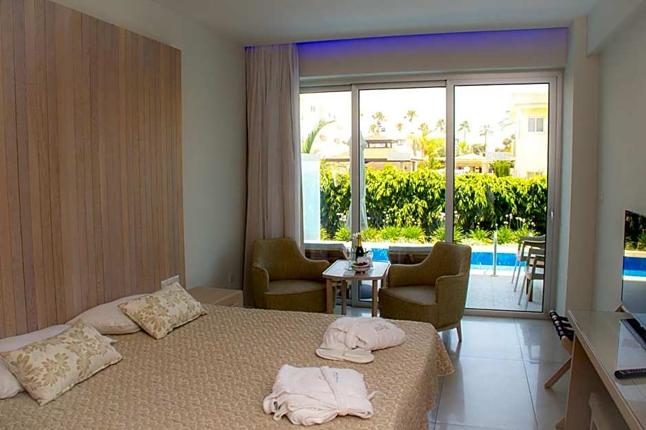 On Ayia Napa’s sun-kissed coastline, this four-star adults-only escape sits at 58 Nissi Avenue, offering direct beach access and a serene seaside vibe. Located about 1.3mi from the city center, it balances easy proximity to town happenings with ample time to unwind by the water.