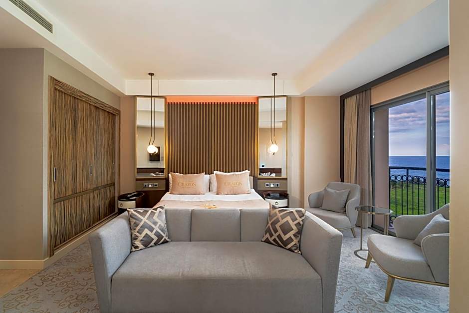 Cratos Premium sits along the Kyrenia coast, inviting guests to a private beach area and beachfront charm. The outdoor pool beckons, with an adults-only infinity option that offers a spectacular sea view. Families are well-catered for with a free Kids' club and a playground, while dining and drinks are easy to come by at the on-site restaurant and bar.
