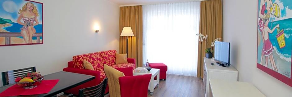 Spacious apartment with a double bed in the first bedroom, 2 single beds in the second bedroom and a living room.