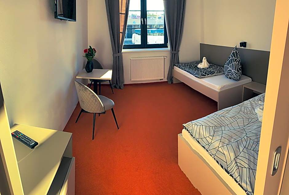 Offering free toiletries, this twin room includes a private bathroom with a shower and a hairdryer. The twin room features carpeted floors, a seating area with a flat-screen TV with satellite channels, a tea and coffee maker, a wardrobe, as well as heating. The unit offers 2 beds.