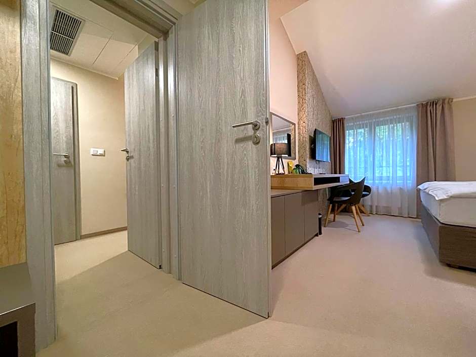 Providing free toiletries, this triple room includes a private bathroom with a shower, a hairdryer and slippers. The air-conditioned triple room provides a flat-screen TV with satellite channels, a private entrance, soundproof walls, a mini-bar as well as garden views.