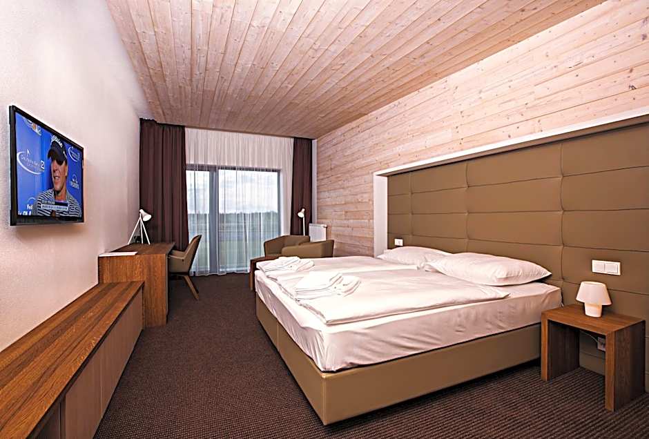 This air-conditioned room features a stylish private bathroom, satellite TV, and a terrace with a view over the golf course.