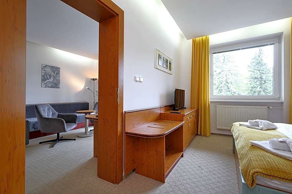 With a mix of dining, outdoor space, and varied room options, this mountain retreat invites solo travelers, couples, and families to make the most of Špindlerův Mlýn. Outdoor spaces include a sun deck and terrace with mountain views, ideal for unwinding after a day on the slopes. The on-site restaurant, bar, and ski-friendly amenities create a convenient base for alpine adventures, while a range of room types ensures comfortable fits for every traveler.