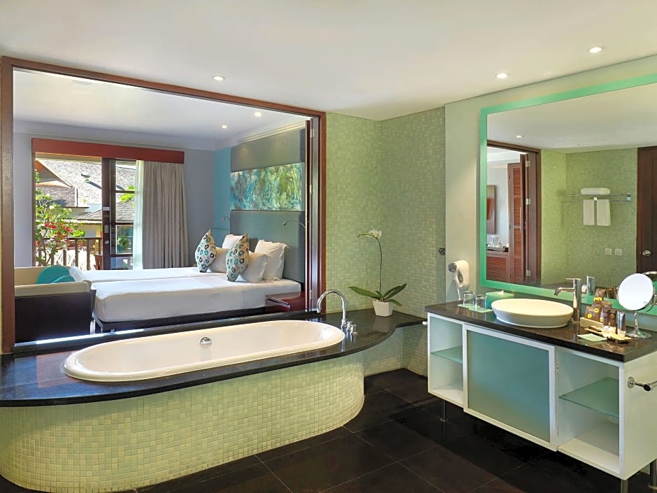 Novotel Bali Nusa Dua tilbyder et imponerende udvalg af værelsestyper, der imødekommer forskellige præferencer. Fra Deluxe Twin Rooms med balkoner til rummelige lejligheder med to soveværelser og private pools — der er en perfekt indkvarteringsmulighed for alle. Værelsesstørrelserne varierer fra 538 kvadratfod til 2960 kvadratfod, hvilket sikrer rigelig plads til dig og dine rejsefæller. Med forskellige sengearrangementer kan værelserne rumme forskelligt antal voksne og børn, hvilket gør dem ideelle for familier eller grupper, der rejser sammen. Uanset om du søger et hyggeligt tilflugtssted eller et rummeligt feriehus, har Novotel Bali Nusa Dua det perfekte værelse til dine behov.