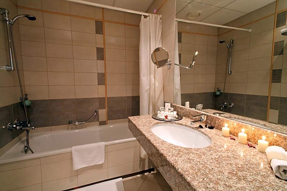 Features include air conditioning, free Wifi, a restaurant and bar, a terrace, and the convenience of a 24-hour front desk. On-site perks include a free business center, free fitness center, and sauna, plus a range of room comforts like room service, free toiletries, balconies, bathtubs, bidets, and extra-long beds (>6.5 ft). Family-friendly options include a kid-friendly buffet and kids’ meals, while accessibility is covered with wheelchair access and upper floors reachable by elevator. Parking and pet-friendly policies are available for extra charges, and meeting/banquet facilities carry an extra charge, with a tour desk for sightseeing suggestions.