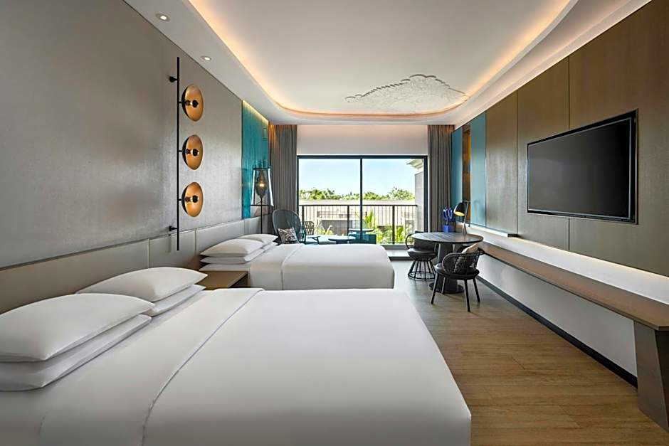 Feinschmecker finden vor Ort eine köstliche Auswahl: Backstage All Day Dining serviert internationale Gerichte in einem modernen, familienfreundlichen Ambiente, während Tanah Liat Meeresfrüchte mit einer modernen, romantischen Note anbietet, und Lion X kantonesische und chinesische Spezialitäten präsentiert (eröffnet im Januar 2023). Für einen schnellen Drink oder einen zwanglosen Imbiss sorgen R Bar und Atomic 17 für eine moderne, luftige Atmosphäre. Ein privater Strandbereich und ein funkelnder Außenpool bilden die Kulisse für sonnenverwöhnte Tage, und ein kostenloser Kids-Club sowie ein eigener Kinderpool unterhalten die jüngeren Gäste. Kostenloses WLAN, Zimmerservice und ein Fitnesscenter bieten zusätzlichen Komfort, und Abendshows mit Live‑Musik oder Darbietungen sorgen für einen unterhaltsamen Ausklang des Abends.