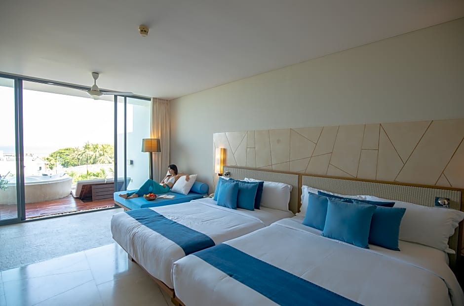 Es erwartet Sie eine breite Auswahl an Suiten und Villen, mit Optionen wie Veranda, 2-Schlafzimmer, Meerblick (1163 sqft) und Veranda Deluxe mit Kingsize-Bett, sowie Villa mit privatem Pool und Executive Suite, Meerblick (1195 sqft). Für diejenigen, die zusätzlichen Platz wünschen, verleiht die Premium Deluxe mit 2 Queen-Betten und einem Plunge-Pool Familien- oder Gruppenreisen einen Hauch von Luxus.