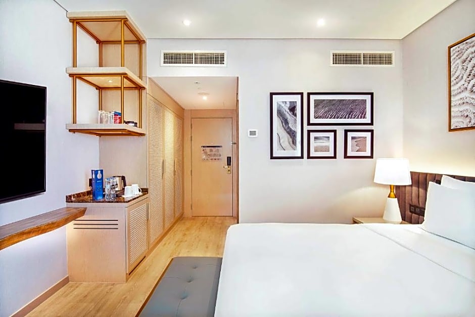 Radisson Blu Hotel & Resort, Abu Dhabi Corniche ist ein 5-Sterne-Resort an der Corniche von Abu Dhabi in den Vereinigten Arabischen Emiraten. Adresse: Corniche Rd, Al Khubeirah. Radisson Blu Hotel & Resort, Abu Dhabi Corniche liegt 4,6mi vom Stadtzentrum entfernt und bietet als Wasserlage modernen Komfort sowie eine erstklassige Lage an der Küste von Abu Dhabi.