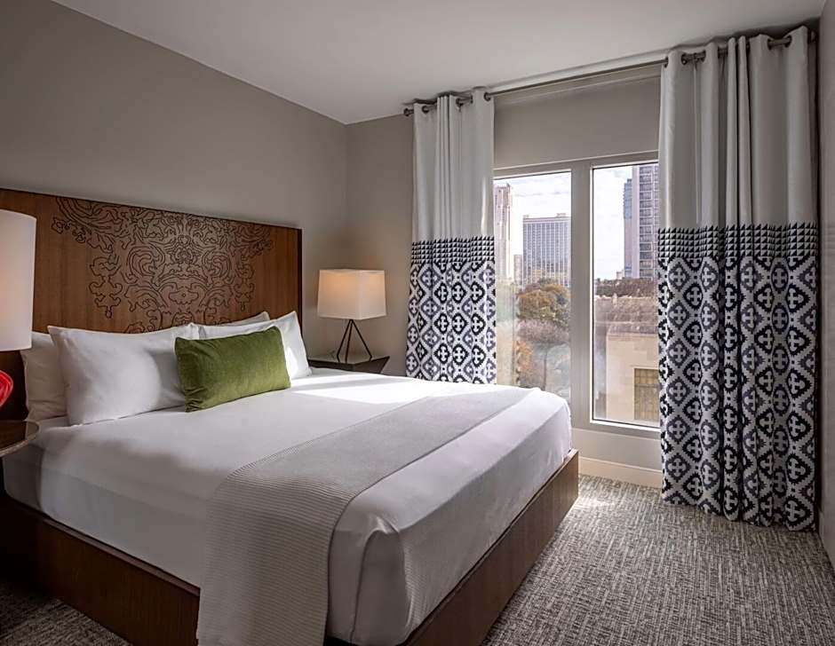 Auf dem Gelände serviert Ambler Texas Kitchen and Cocktails amerikanische Gerichte zu den Mahlzeiten, und Spa-/Wellnesspakete bieten ein wenig zusätzliche Verwöhnung. Kostenlose Live-Musik begleitet die Abende, und der Außenpool auf dem Dach — beheizt und mit malerischem Ausblick — bietet eine stilvolle, nur für Erwachsene zugängliche Oase unter dem texanischen Himmel.
