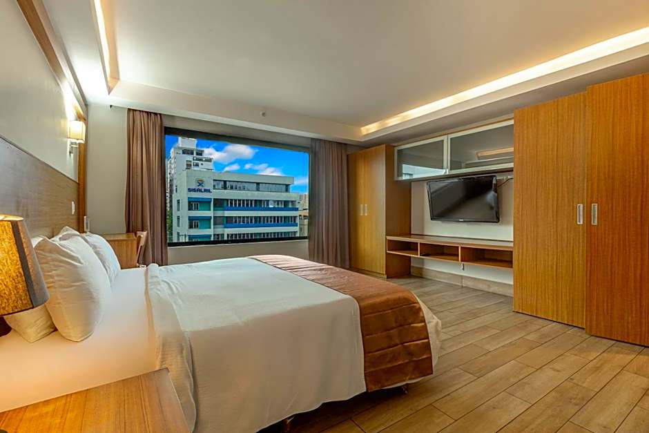 This room is located on the 6th and 7th floor with views of the city. It features a king-size bed and flat-screen cable TV.