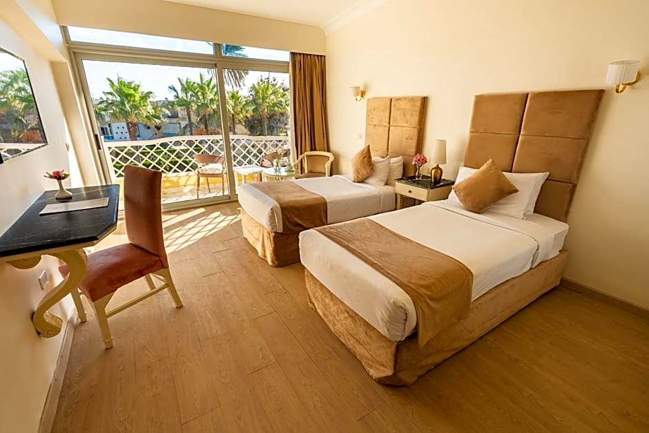 This twin/double room has a balcony with a pool view, seating area and air conditioning.