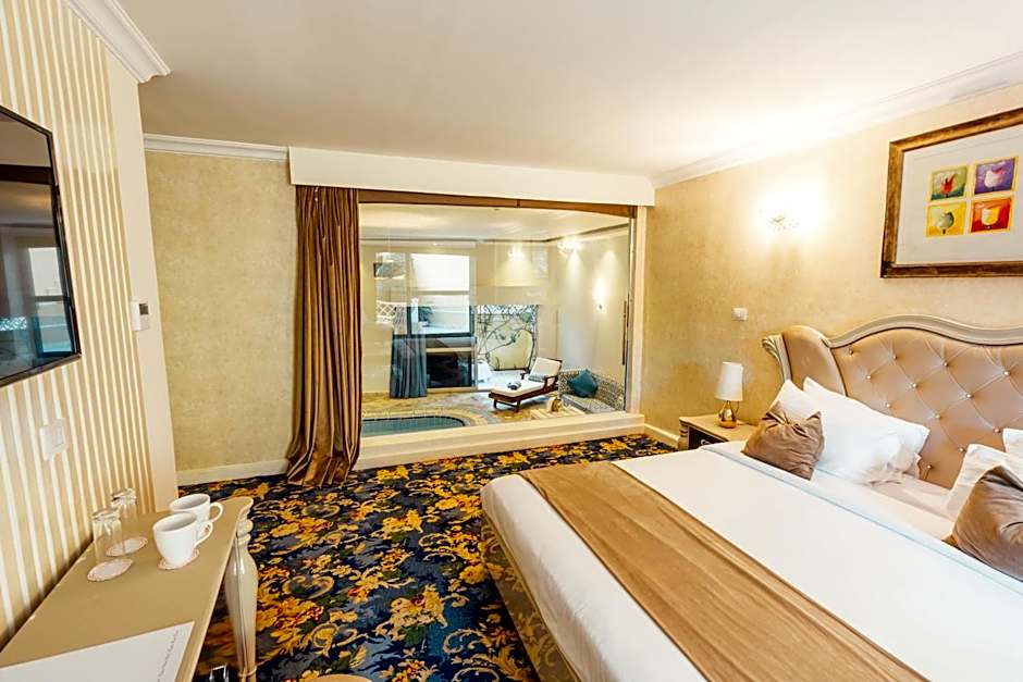 This suite features a balcony, a dining area and a private indoor pool and is receiving one time refill per day for the mini-bar (not including alchohol). The bathroom includes a spa bath and a bathrobe.