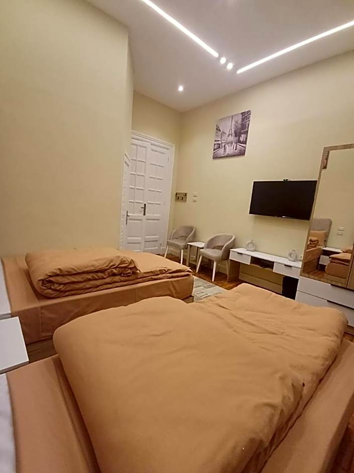The twin/double room offers air conditioning, parquet floors, as well as a shared bathroom boasting a shower and a hairdryer. The twin/double room has city views. The unit has 2 beds.