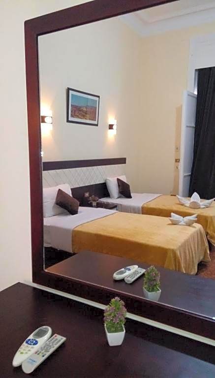 The hotel is not just a place to sleep but a cozy haven with all the amenities you need to feel at home. Enjoy the convenience of free Wi-Fi while planning your next adventure, or unwind on the terrace with stunning views after a day of sightseeing. With 127 reviews praising our friendly staff and serene soundproof rooms, every corner of the Cairo Paradise Hotel promises a delightful stay. Whether you're jetting in for a quick getaway or a deep dive into Egyptian culture, our room service, airport shuttles, and tour desk will take care of every detail.