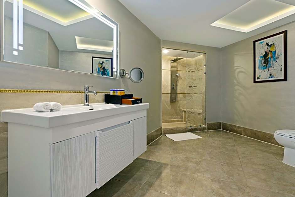 The resort offers a plethora of amenities to keep you entertained throughout your stay. From a free water park and outdoor swimming pool to a private beach area and kid-friendly buffet, there's something for everyone. Other amenities include a Turkish/Steam Bath, water sports facilities, spa services, a fitness center, and even live music performances.