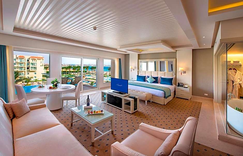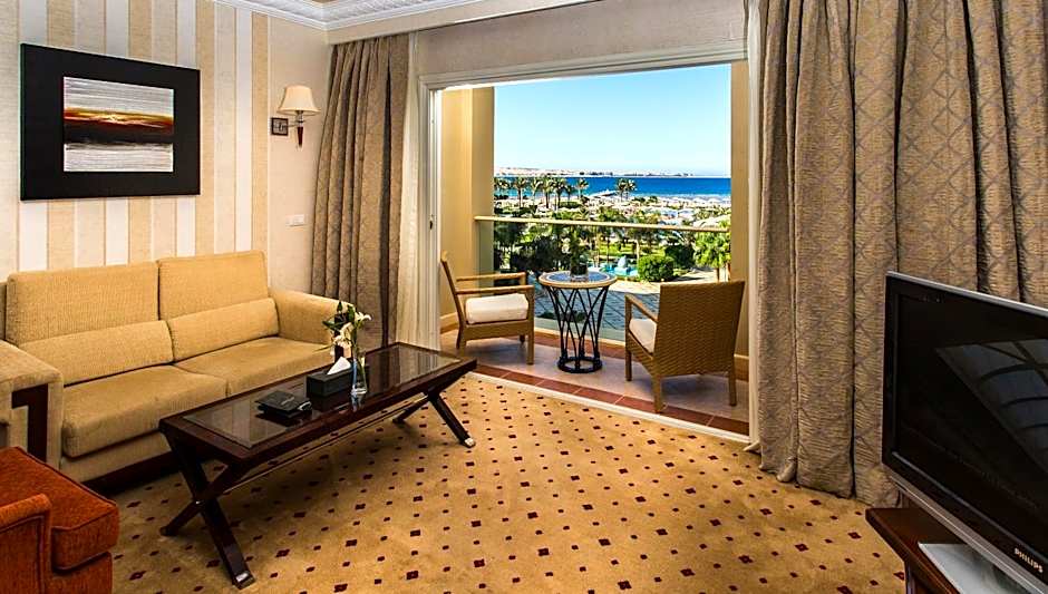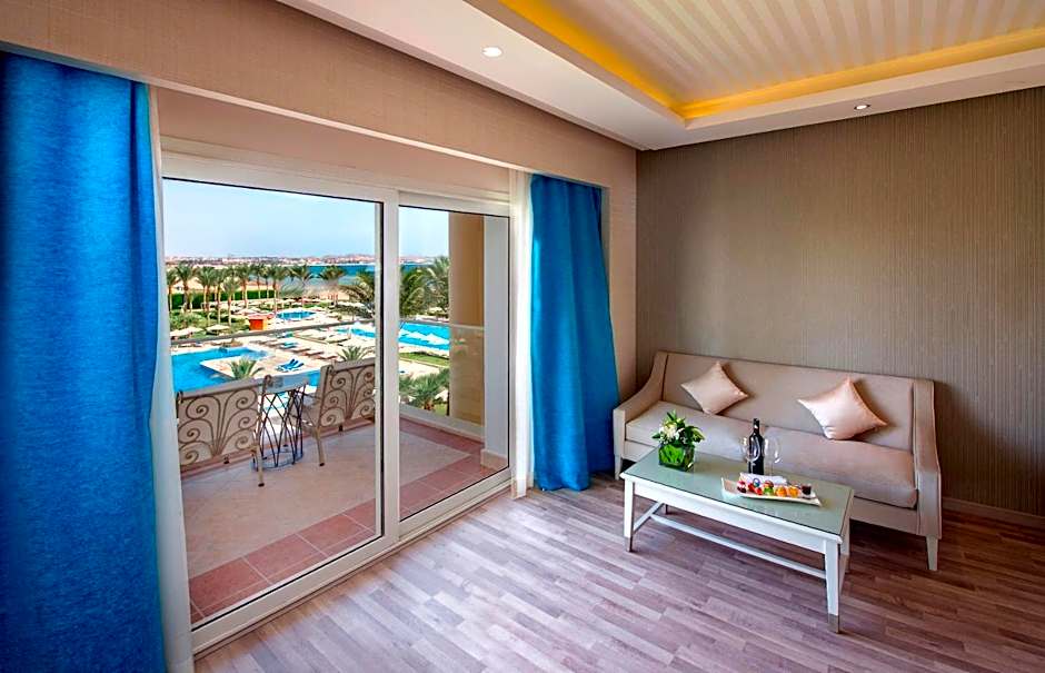 This double room features a balcony, sofa and seating area. This room includes the below benefits: -Free room upgrade to the next room category (Subject to availability) -A Refreshing welcome drink upon arrival at the hotel -VIP check-in by the Hotel Management -Early check-in as per hotel availability -Late check-out until 03:00 PM as per hotel availability -Honeymoon cake & fruits waiting in your guestroom -All day round personal assistance at your disposal by phone and in person -Romantic honeymoon deluxe breakfast served in the privacy of your room ( once per stay ) (prior reservation required) -Candlelight dinner in one of our A La Carte Restaurants once per stay (prior reservation required) -Complimentary Gym use daily with personal trainer -30 minutes Thalasso Therapy for two, treatment that use saltwater designed to cleanse, soothe and revitalize the skin and body -20% discount on spa treatments in an exclusive fully equipped health facility that allows you to relax and pamper your body. -Daily Evening shows with variety of traditional acts and live music -Billiard & Table Tennis free of charge Complementary access to Sky Pool, Sauna, Jacuzzi -15% discount on Romantic Candlelit Dinner on the beach or in the Le Reve gardens under the stars just for two (valid marriage certificate is required to be less than 3 month) -Personalized gift from the General Manager for the happy couple for the next vacation -Above package available for Egyptian & Foreigner Residents only