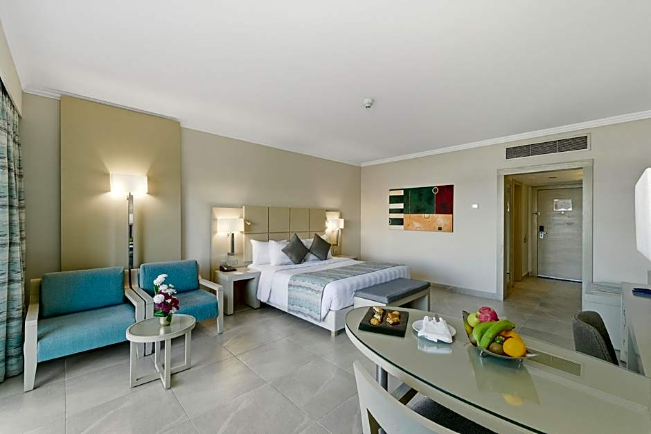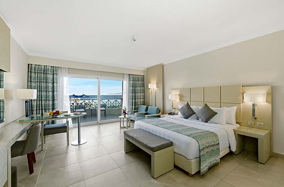 This Spacious room air-conditioned room features either a balcony or a terrace with a beachfront view. It features an electronic door locking system, satellite TV with international channels, mini-bar, tea, and coffee-making facilities, a desk with free internet access, a safe deposit box, air conditioning, comfortable beds with exquisite Egyptian cotton sheets, and two reading spot lamps. Bathrooms feature a double-head shower cabin, bidet, hairdryer, shaving mirror, bath robes, slippers, and free toiletries.