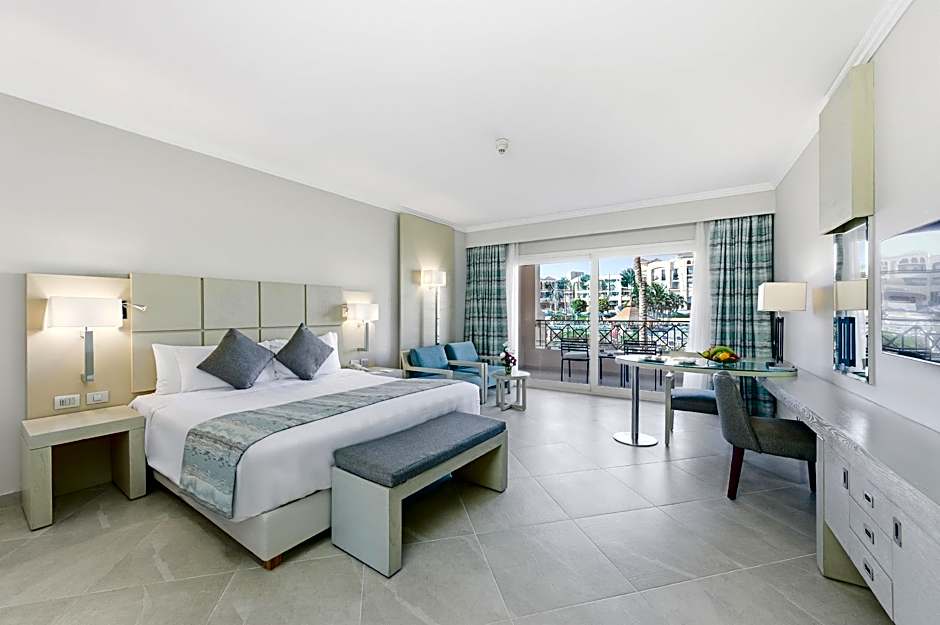 This Spacious room air-conditioned room features either a balcony or a terrace with a pool view. It features an electronic door locking system, satellite TV with international channels, mini-bar, tea and coffee-making facilities, a desk with free internet access, a safe deposit box, air conditioning, comfortable beds with exquisite Egyptian cotton sheets, and two reading spot lamps. Bathrooms feature a double-head shower cabin, bidet, hairdryer, shaving mirror, bath robes, slippers, and free toiletries.