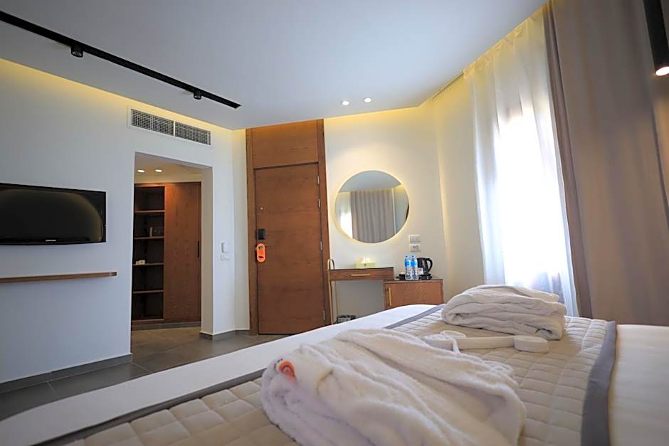 The Suites consist of one bedroom with a double bed and a living area separated by a partition. All rooms have a well-appointed bathroom with bathtub and a furnished balcony/terrace with pool or sea side view. The floors in the rooms are tiled.