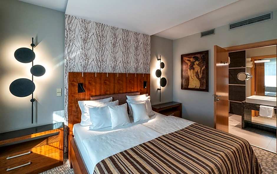 Στις παροχές του καταλύματος περιλαμβάνονται εξωτερική πισίνα (δωρεάν) και παιδική πισίνα, καθώς και δωρεάν Wi‑Fi και ιδιωτικός χώρος στάθμευσης στις εγκαταστάσεις. Οι επιλογές ευεξίας περιλαμβάνουν γυμναστήριο, σάουνα (δωρεάν), ατμόλουτρο και τουρκικό/ατμόλουτρο. Πρακτικές διευκολύνσεις περιλαμβάνουν κλιματισμό, ηχομονωμένα δωμάτια, ιδιωτική είσοδο, βεράντα και ηλιακή πλατφόρμα, καθώς και μπαλκόνι με θέα σε αξιοθέατα. Μικρή κουζίνα με σκεύη και άλλες κουζινικές εγκαταστάσεις καθιστούν τις παρατεταμένες διαμονές άνετες.