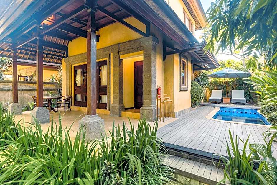 Garden views unfold from a private balcony or terrace, with the sun deck inviting breezy mornings and relaxed evenings by Sanur’s coastal charm.