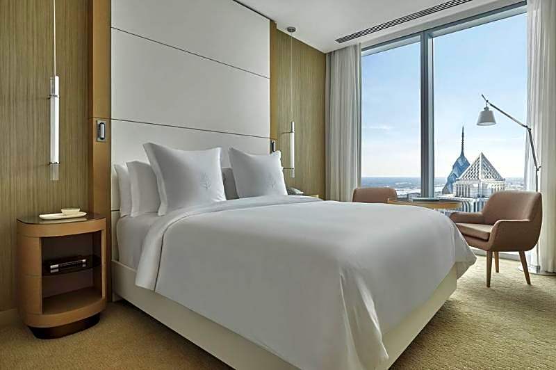 El bienestar y el ocio ocupan un lugar central con una piscina cubierta climatizada que ofrece vistas del skyline, además de un spa que cuenta con baño de vapor y sauna y un menú de masajes (se aplican cargos adicionales). Cuando sea momento de moverse, hay un gimnasio bien equipado, y el tiempo de descanso puede mejorarse con servicios de streaming para relajarse por la noche.